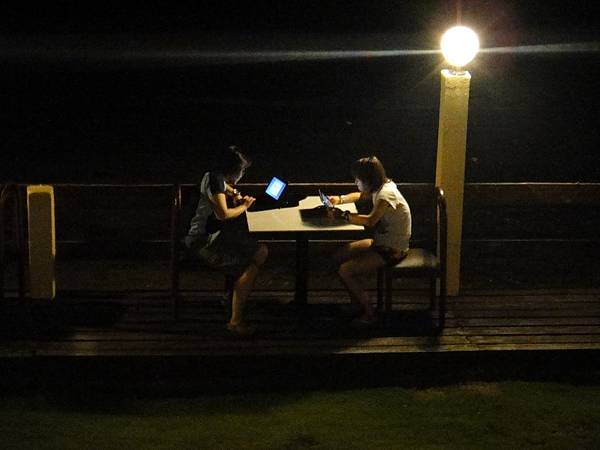 麗華跟淑靜乾脆到海邊小桌上網,所謂燈光美氣氛佳