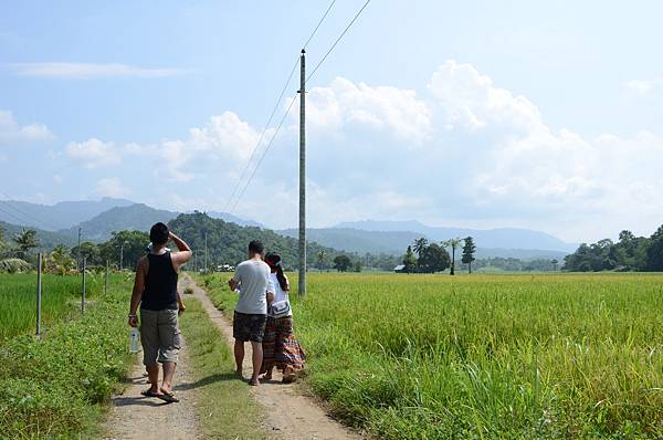 resort 到大馬路之間是被稻穗包圍的田邊小路